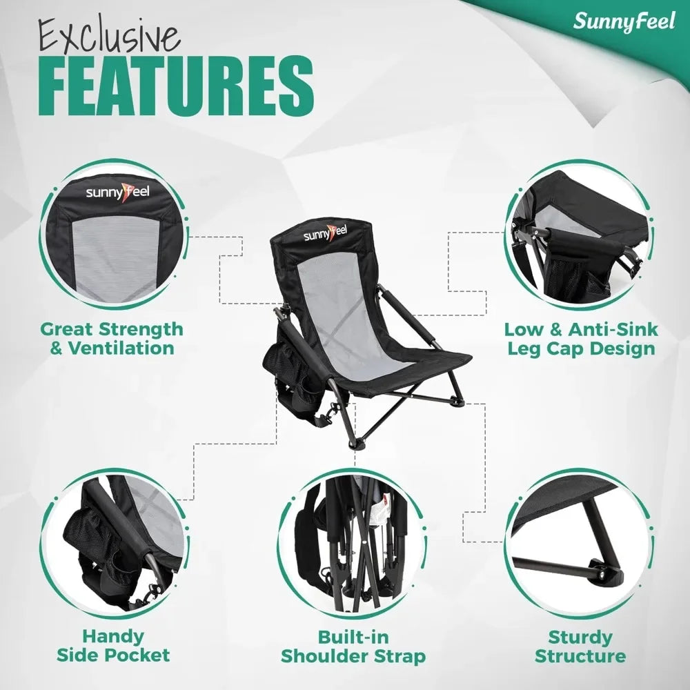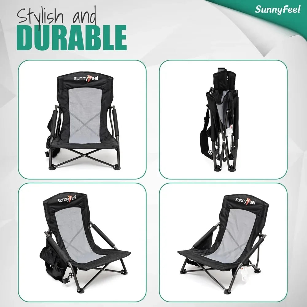 - A Low Profile Sling Camping Chair that is Built for Anywhere: Use it as a camping chair, folding chair, lawn chair, travel chair, beach chair and more. Suitable for outdoor adventures, tailgating, fishing, backpacking, beach, picnic, sport games, car travelling, or just put it in the backyard, cabin, balcony, patio lawn parties. The SunnyFeel camping chair is an essential to add to your camping accessories.