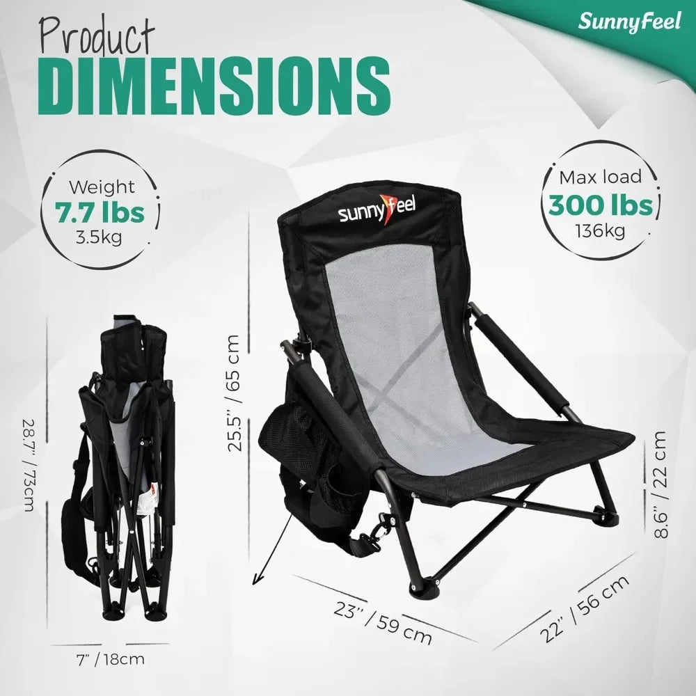 - Extremely Comfy & Space Saving: The low seat beach chair seat & anti-sink leg cap & armrest design provide you an ultimate soft seating experience.The breathable and cooling mesh back design makes sitting for long comfortable for you. The small folding size (29×7.5×7 inches) saves your room while not on duty.