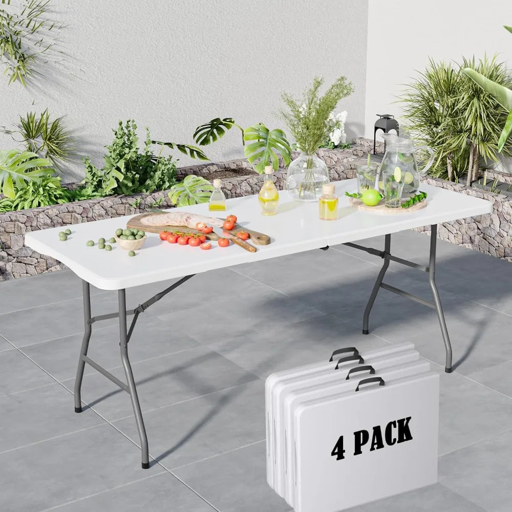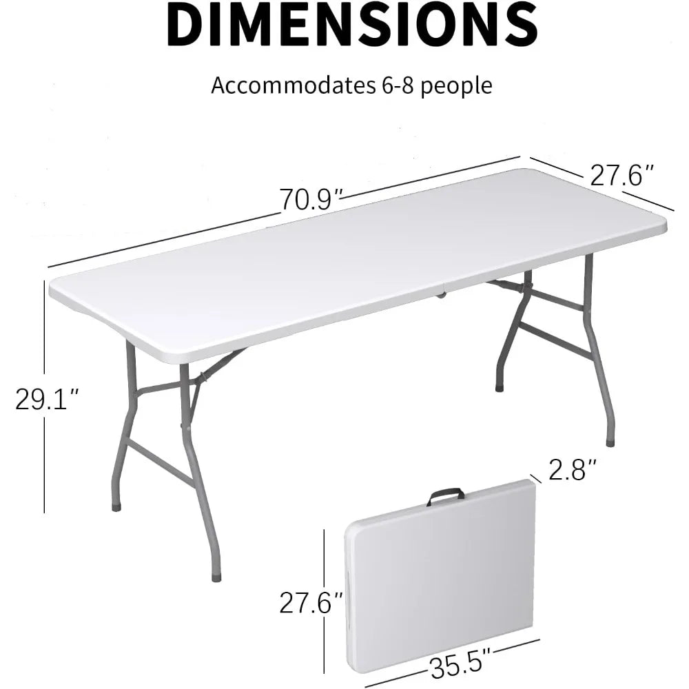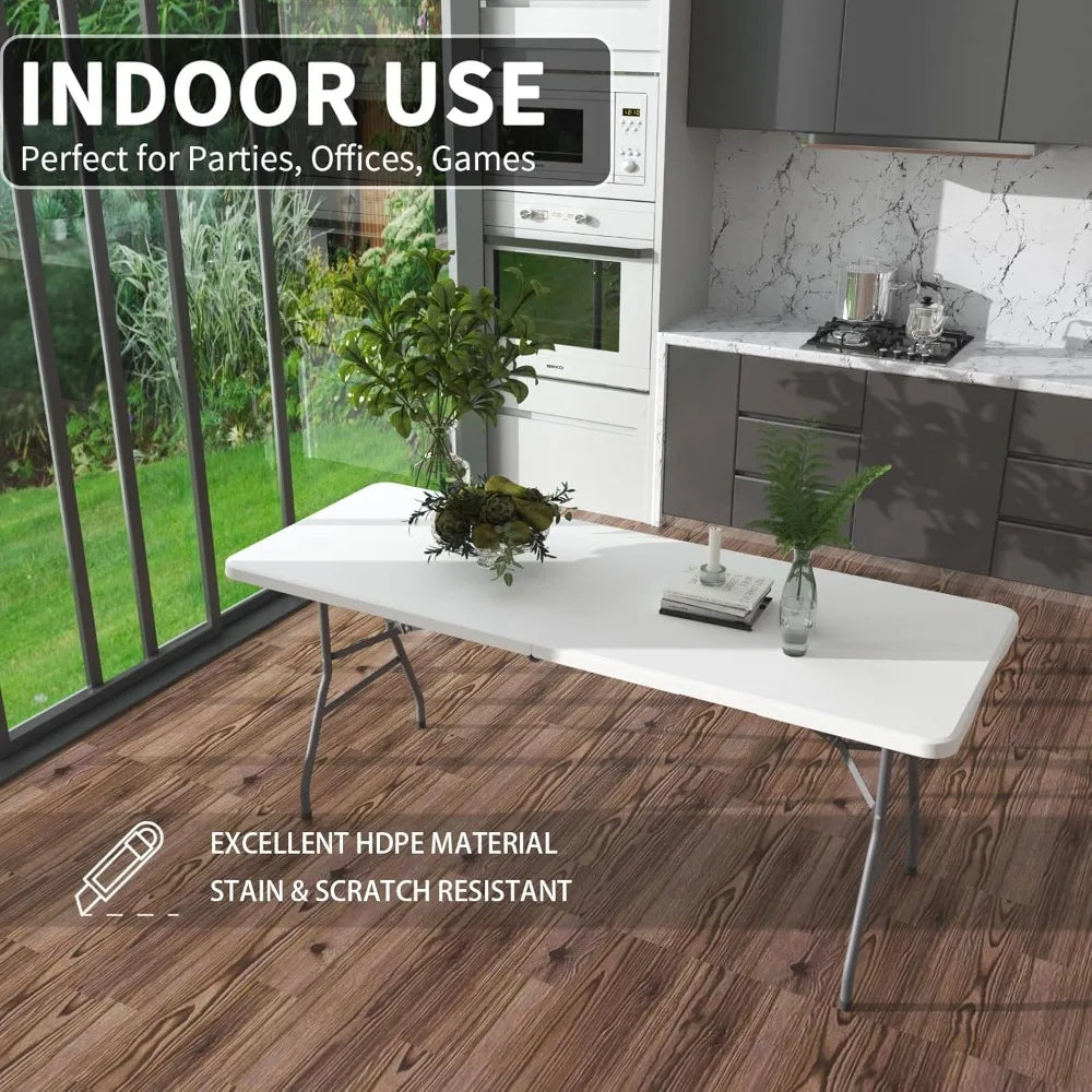 - 【Perfect for Any Occasion】Our versatile 6ft folding table is designed to meet all your needs!With its spacious surface,this foldable table is easily transportable,making it ideal for a variety of settings.Use it indoors for dining, work, gaming, crafting, or studying. When it’s time to head outdoors, it shines at parties, picnics, camping trips, weddings, and business events. Sunproof and waterproof,it’s suitable for all weather conditions, ensuring you can enjoy every occasion to the fullest.