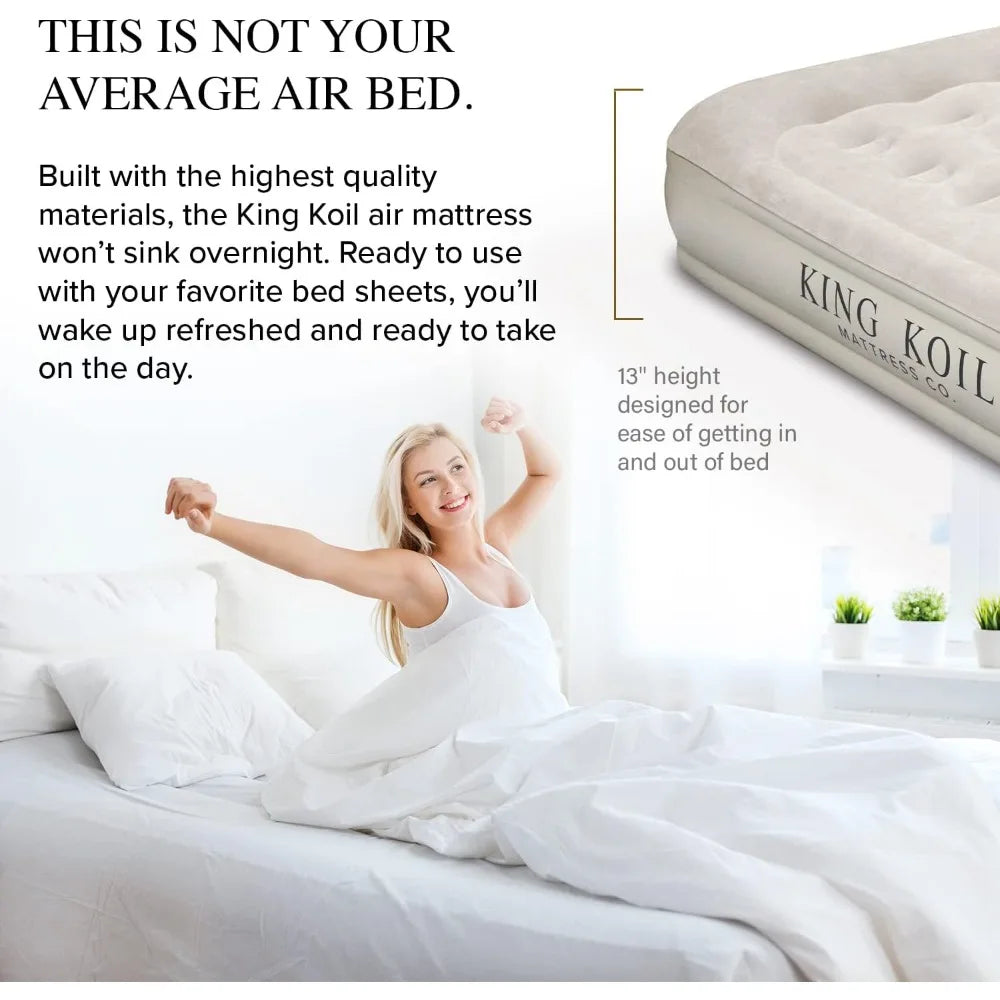 Luxury Queen Size Air Mattress with Built-in High-Speed Pump Best for Home, Camping, Guests, 13" Queen Size Luxury Double Airbed Adjustable Blow Up Mattress, Waterproof