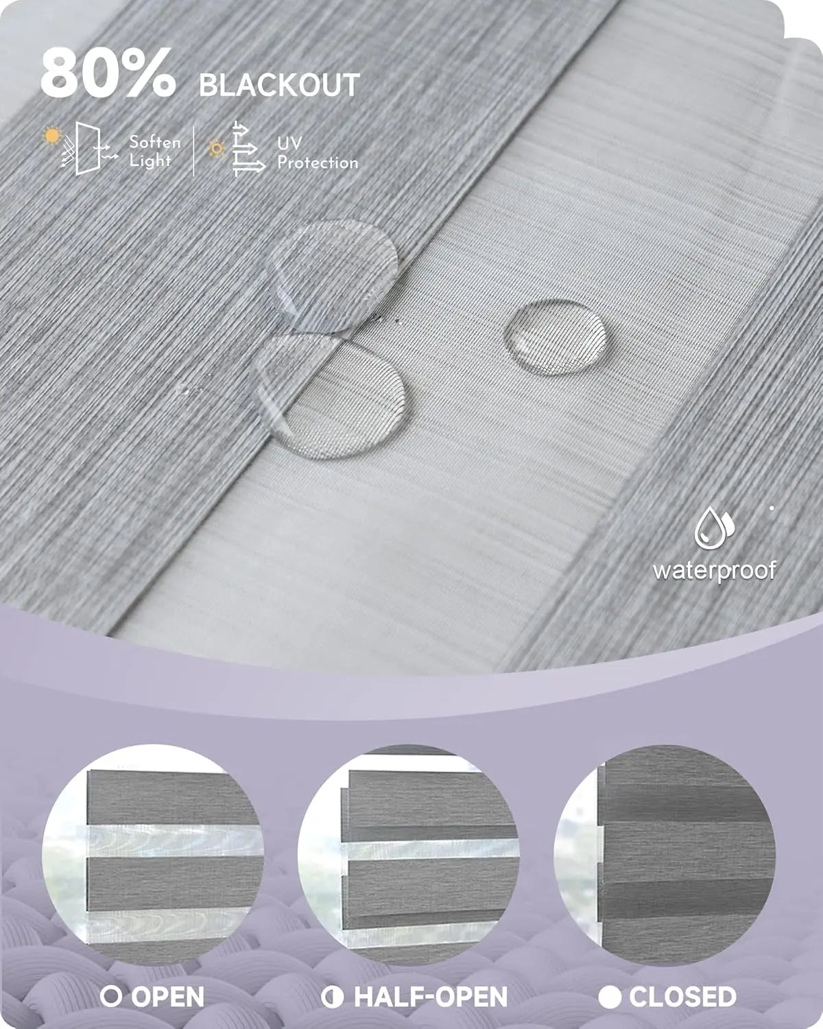 - Functional blinds: 80% blackout, alternating sheer and 3" slats combination. Adjust light by slats dislocation, flexibly switch between privacy and light filtering. Ideal indoor window treatments for living room, bedroom, patio sliding door, office etc. Rohs certificated, environmental friendly. Slats alignment for multi layered shades available.