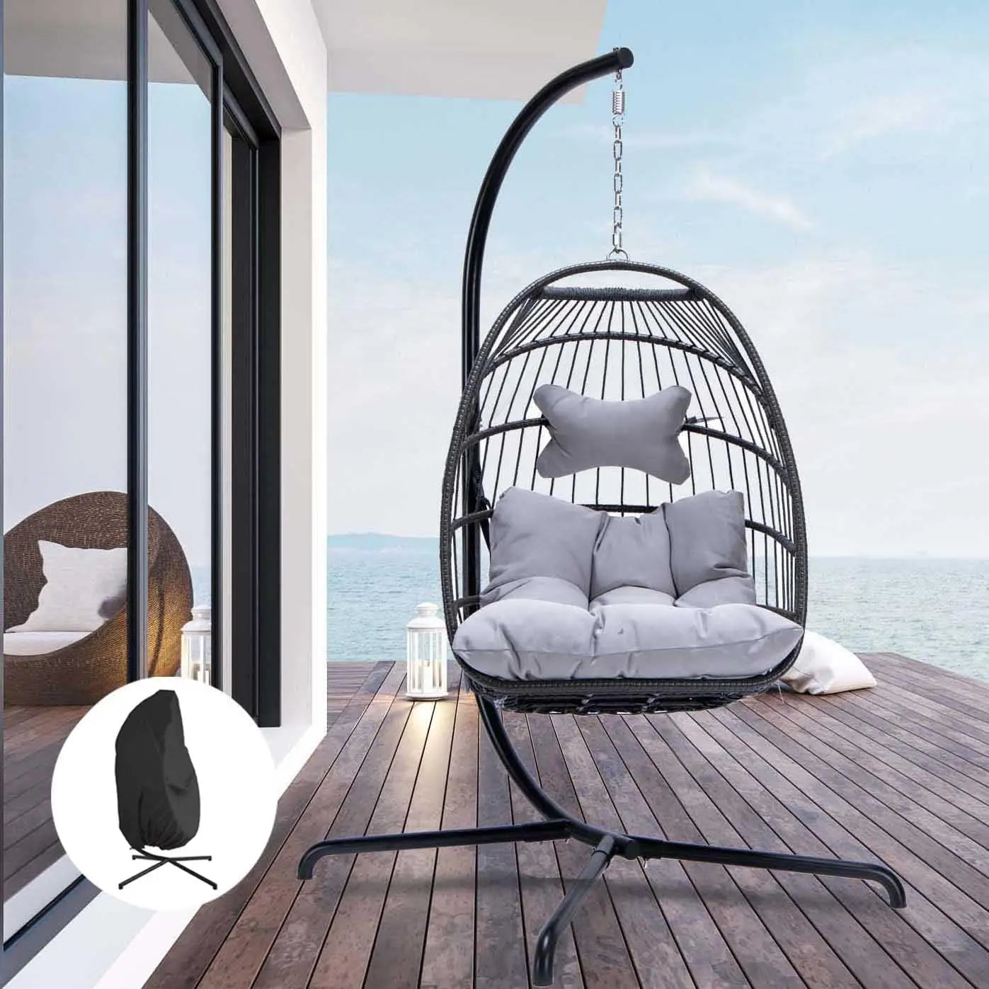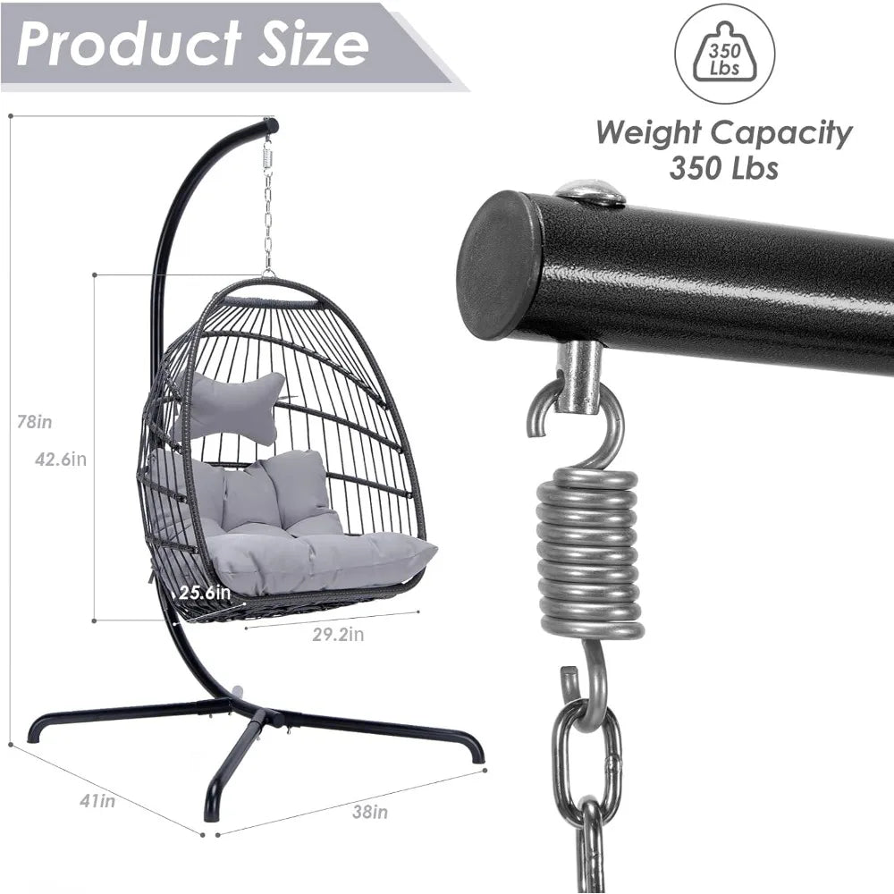 Swing Egg Chair Outdoor Indoor, Patio Wicker Hanging Egg Chairs with Stand, Swinging Hammock with Padded Cushions,